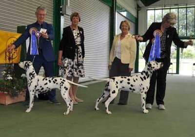 01/08/2015 - At 12 months old, Houston wins the Dog CC and Reserve Best in Show at the British Dalmatian Club 2015 - Lynda Lewis (Dog Judge) and Sue Wilkinson (Bitch Judge)